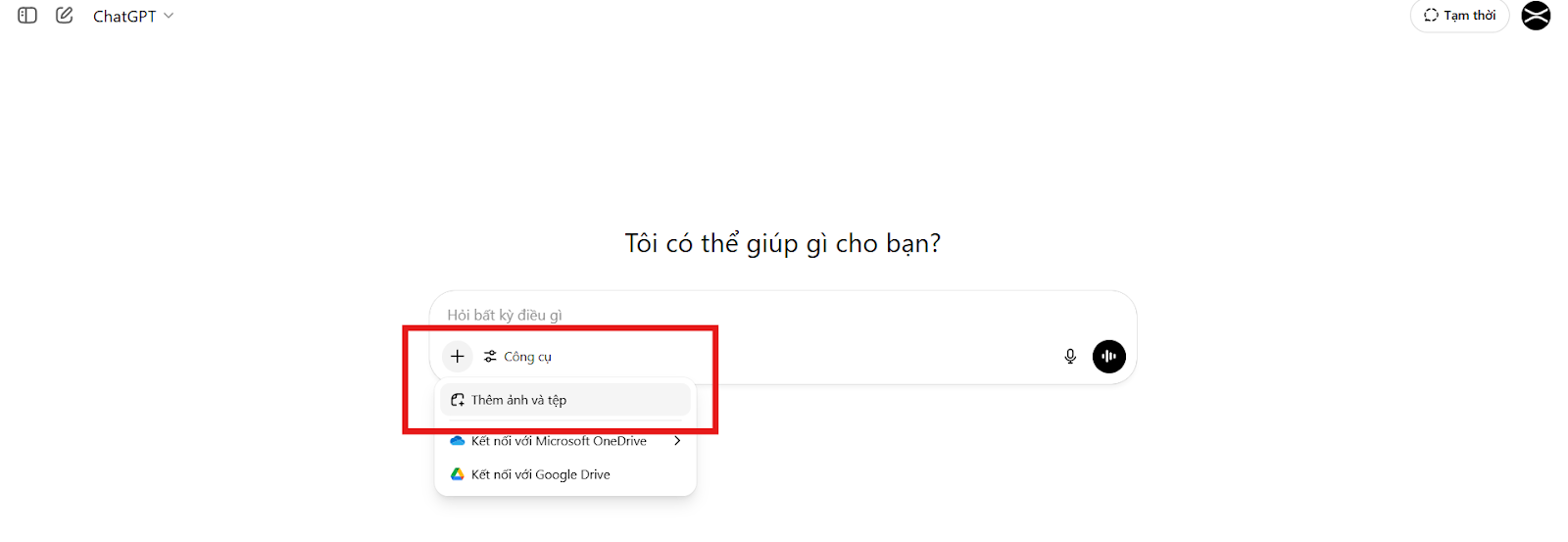 - Nhấn vào biểu tượng dấu (+) trong giao diện ứng dụng hoặc trên trang web ChatGPT.