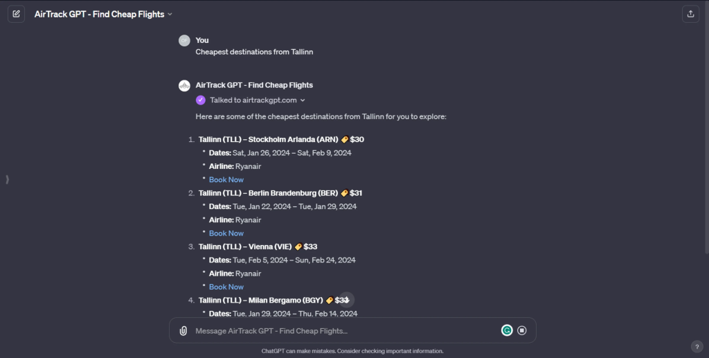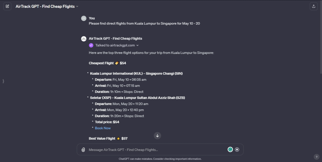 5.1. ChatGPT không thay thế công cụ đặt vé
