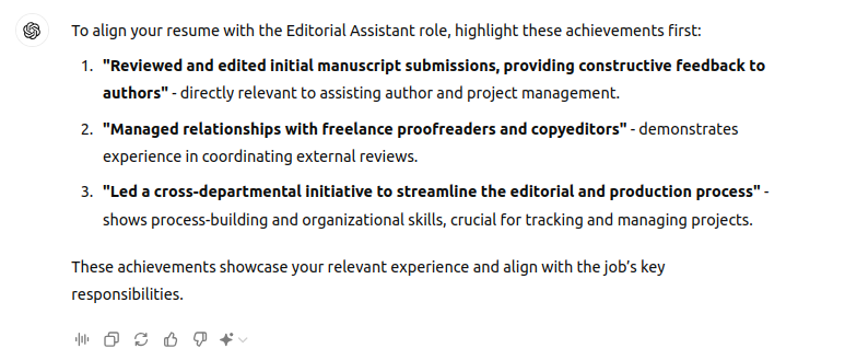 Bạn đang chuyển ngành? Hoặc mới ra trường? ChatGPT giúp bạn làm nổi bật kỹ năng chuyển đổi hoặc kinh nghiệm từ các hoạt động ngoại khóa.