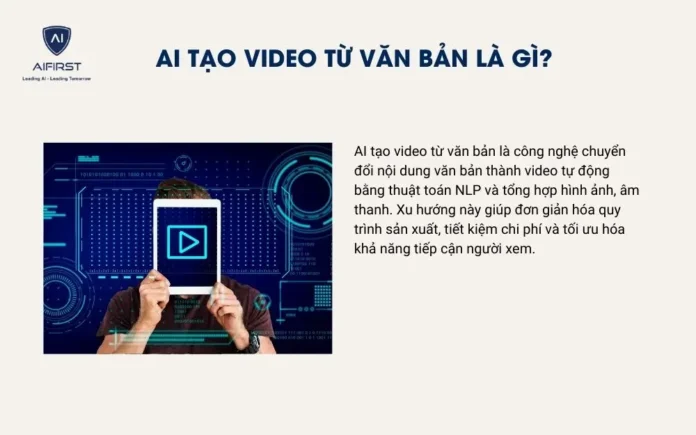 Công cụ AI làm video tự động từ văn bản (AI Text-to-Video) là các nền tảng ứng dụng trí tuệ nhân tạo để phân tích nội dung chữ viết, sau đó tự động tạo ra video hoàn chỉnh bao gồm hình ảnh, video stock, hiệu ứng chuyển cảnh, phụ đề và thậm chí cả giọng đọc AI.