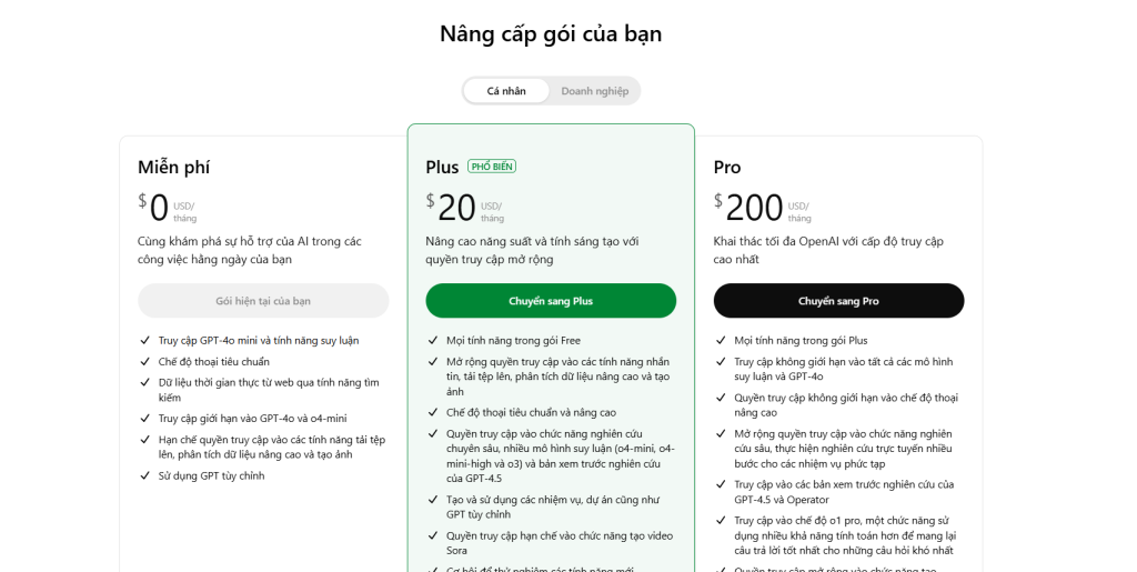 - ⚠️ Bảo Mật Dữ Liệu (Cho Doanh Nghiệp): Với dữ liệu nhạy cảm, các gói Team và Pro cung cấp các biện pháp bảo vệ tốt hơn. Người dùng miễn phí và Plus nên cẩn trọng khi chia sẻ thông tin cá nhân.
