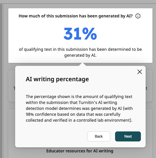 Năm 2023, Turnitin đã thêm tính năng phát hiện nội dung do AI viết. Công cụ này: