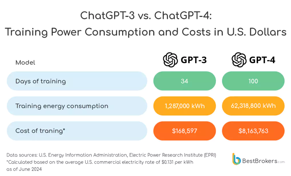 Một đợt huấn luyện kéo dài 3 tháng của GPT-4o ước tính tiêu thụ tới 25 megawatt điện, tương đương 20.000 hộ gia đình. Tổng CO2 thải ra lên đến 24.7 tấn – theo nghiên cứu của Luccioni et al. (2022).