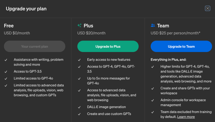 Mô hình dùngGPT-4o (có giới hạn)GPT-4o (ưu tiên truy cập)
