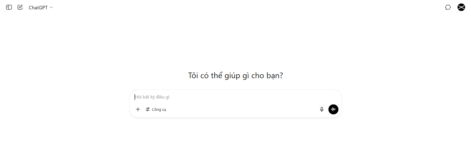 - Khung chat chính: Nằm ở giữa màn hình, đây là nơi bạn sẽ nhập câu hỏi (prompt) và ChatGPT sẽ hiển thị câu trả lời.
